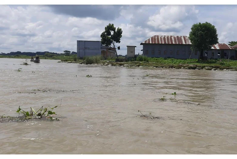 শরীয়তপুরে পদ্মা নদীর পানি বিপৎসীমার ওপর দিয়ে প্রবাহিত হচ্ছে